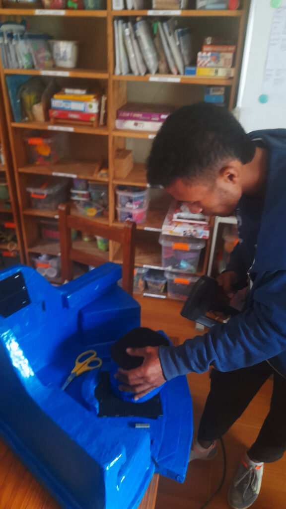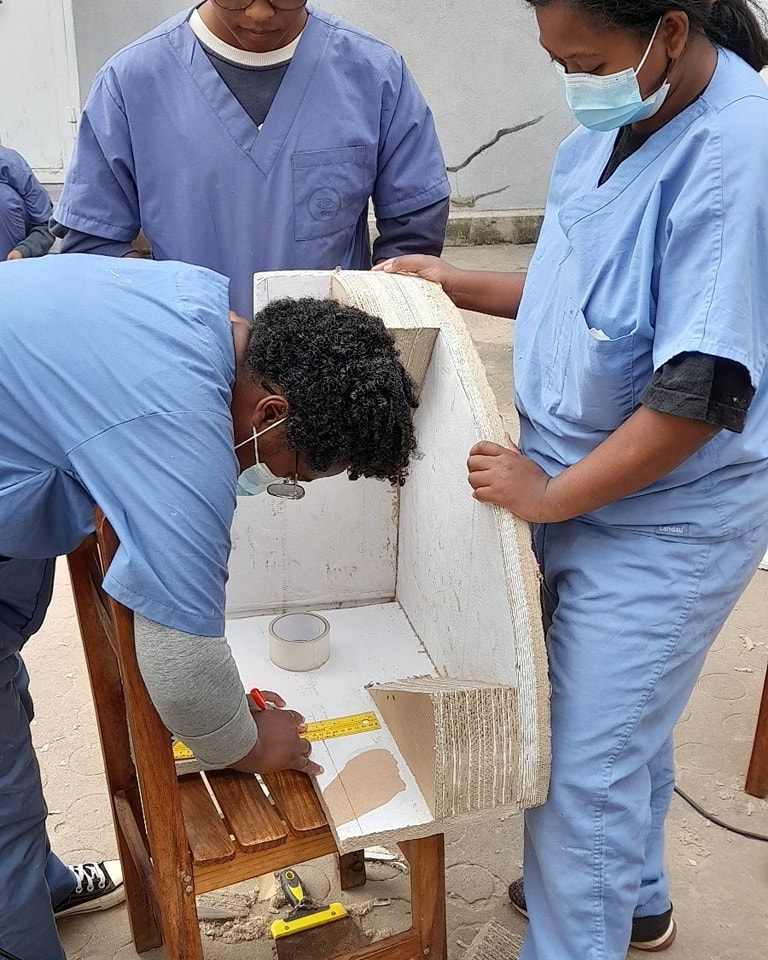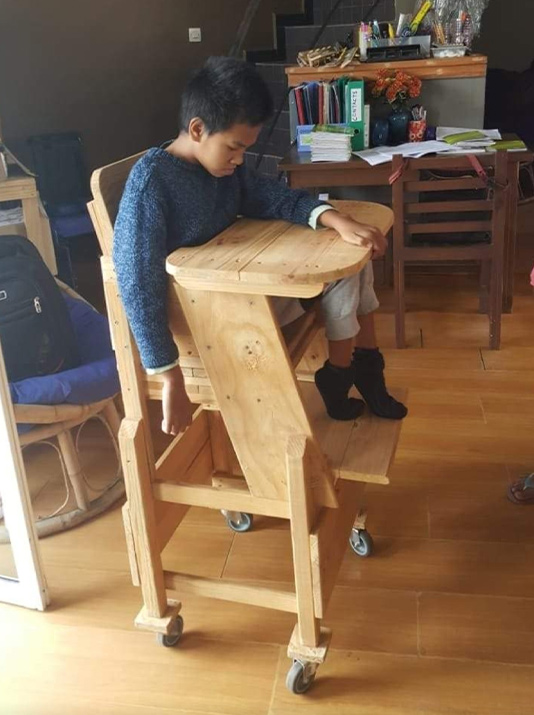 The GNTP team, in collaboration with the woodwork specialist, has designed new patents for an adjustable standing frame, a 90-90-90 pediatric chair, a dual-function pediatric toilet chair, an anterior-tilt standing frame, and a pediatric walker.