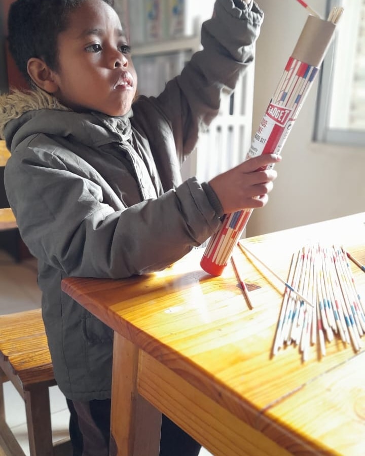 Occupational therapy at the FJKM school takes place twice a week and is carried out by an occupational therapist. The service includes therapeutic follow-up for disabled schoolchildren and a program for children with learning difficulties.